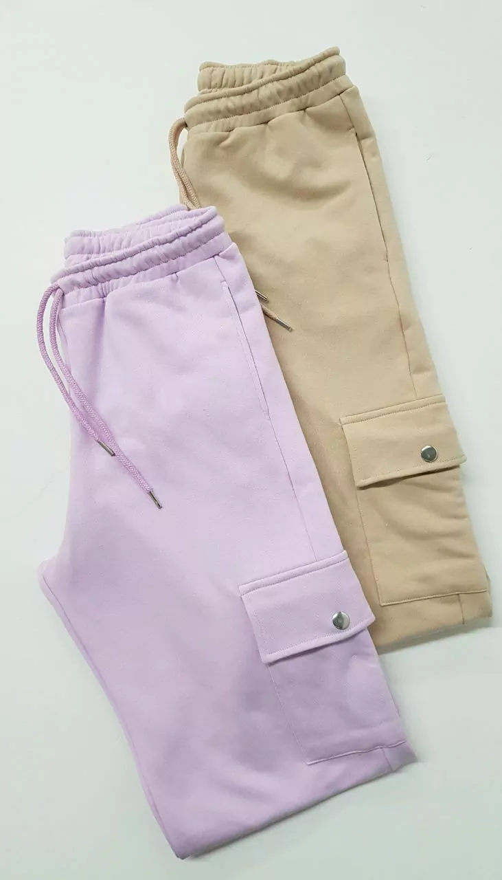 Tiene tiro medio / alto con elástico, cordón con terminaciones metálicas y bolsillos en los laterales.