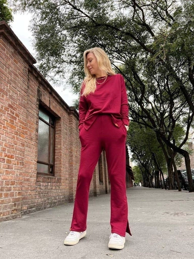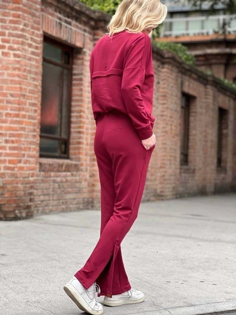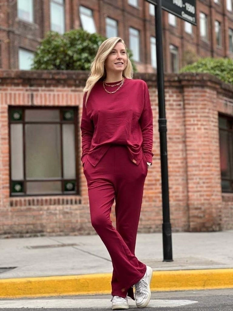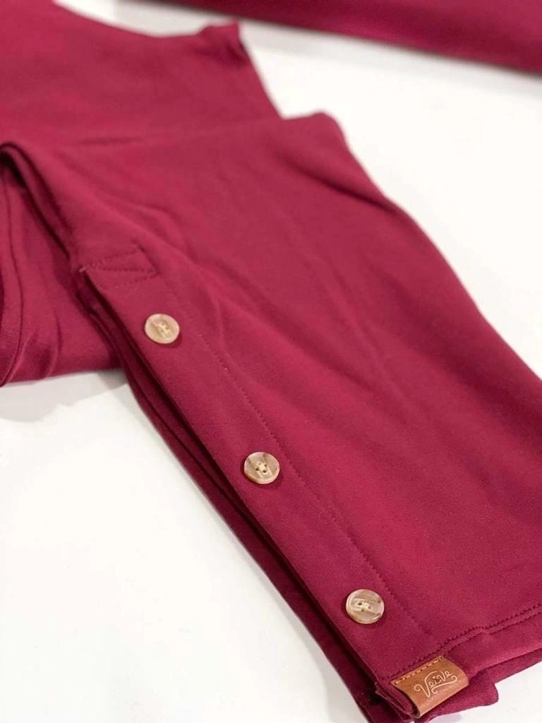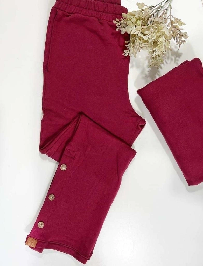 Pantalón jogging con elástico en cintura, bolsillos y abertura lateral inferior, con ojales y botones (puede ir abierto o cerrado).