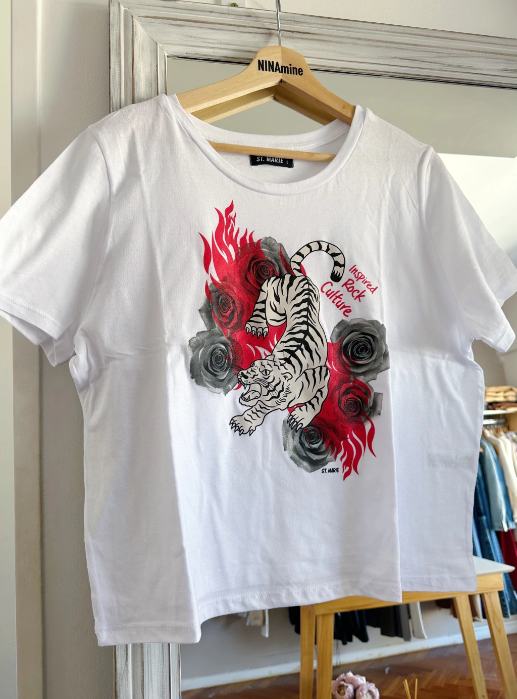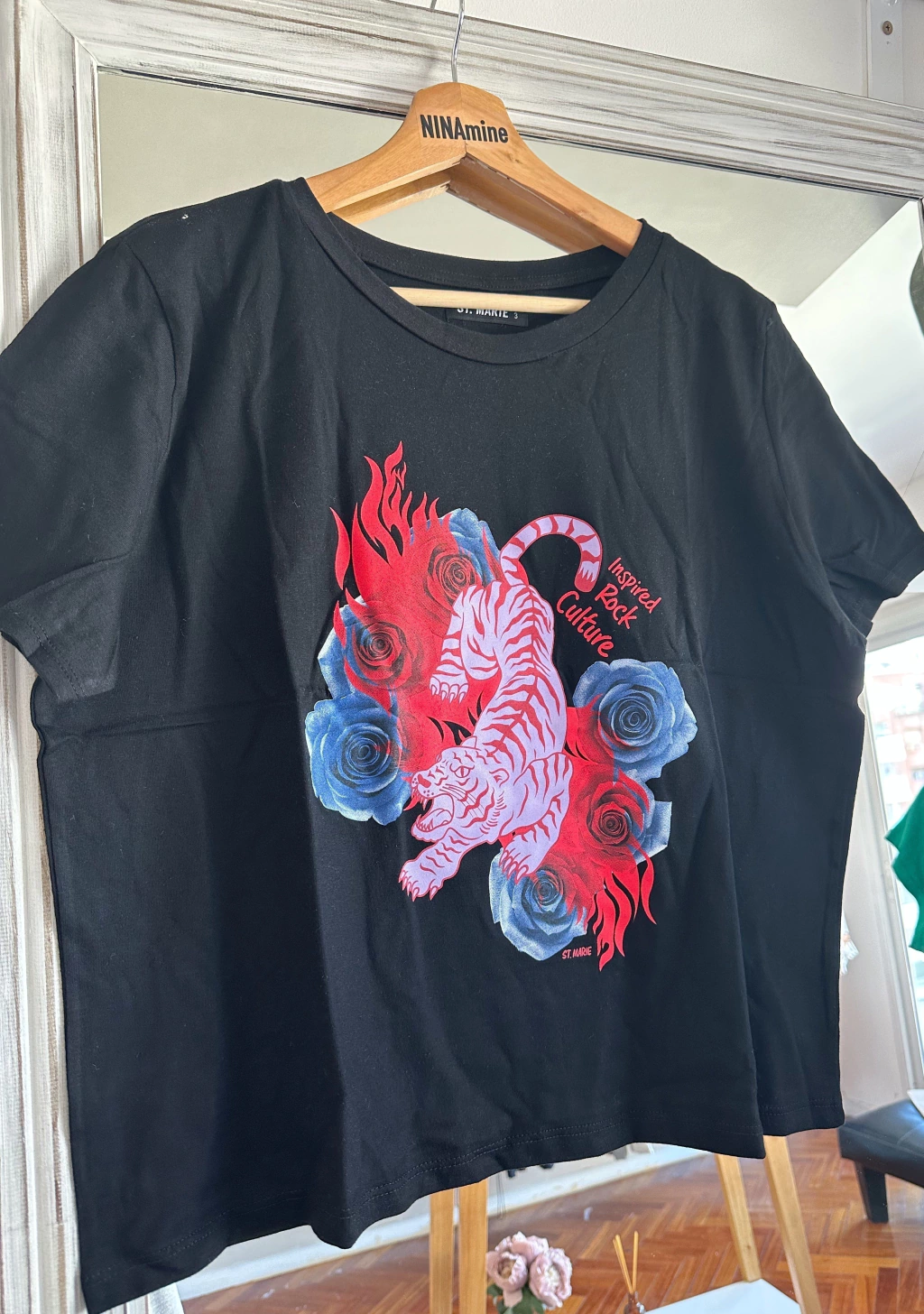Remera basica con estampa metalizada en el delantero.