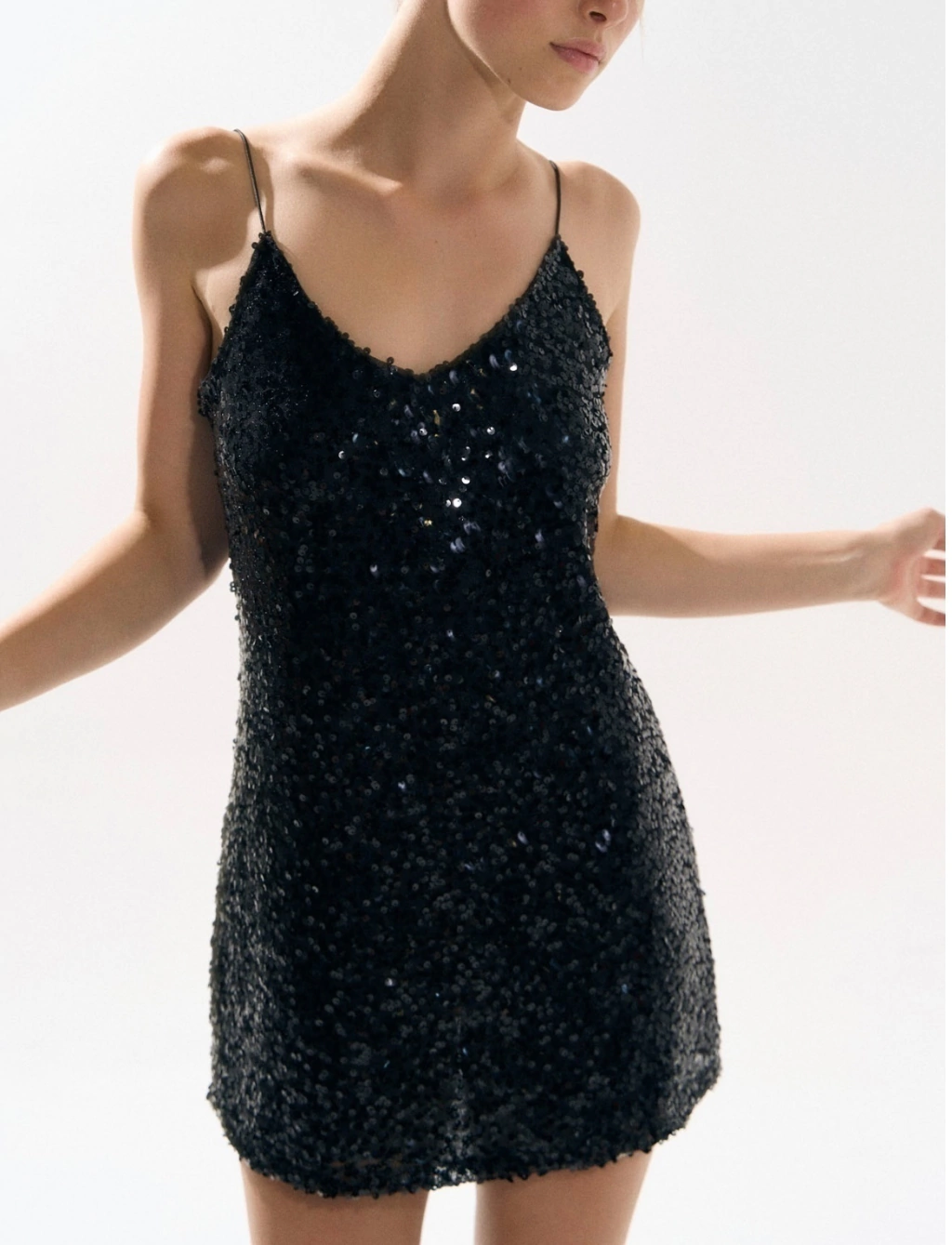 Vestido de lentejuelas , tiene forrería para que no transparente, tiras finitas super delicadas .