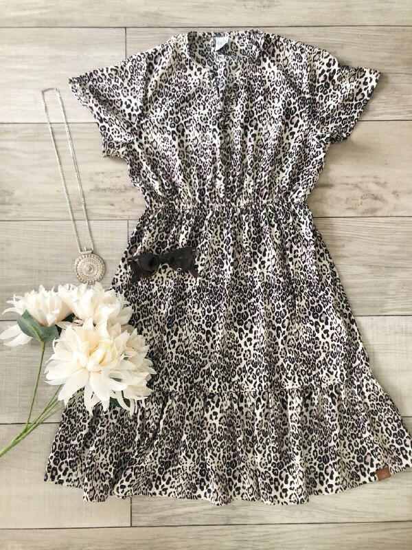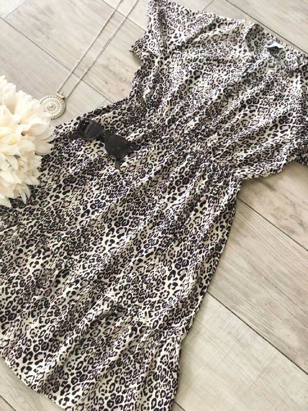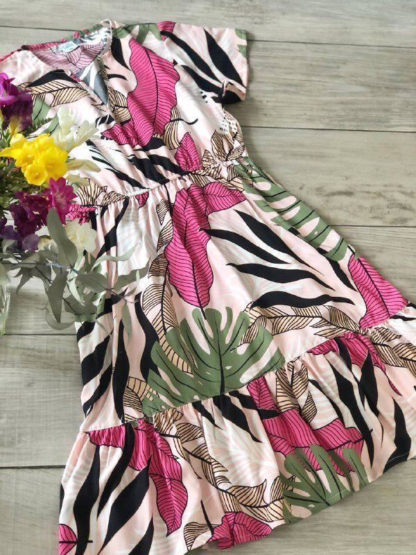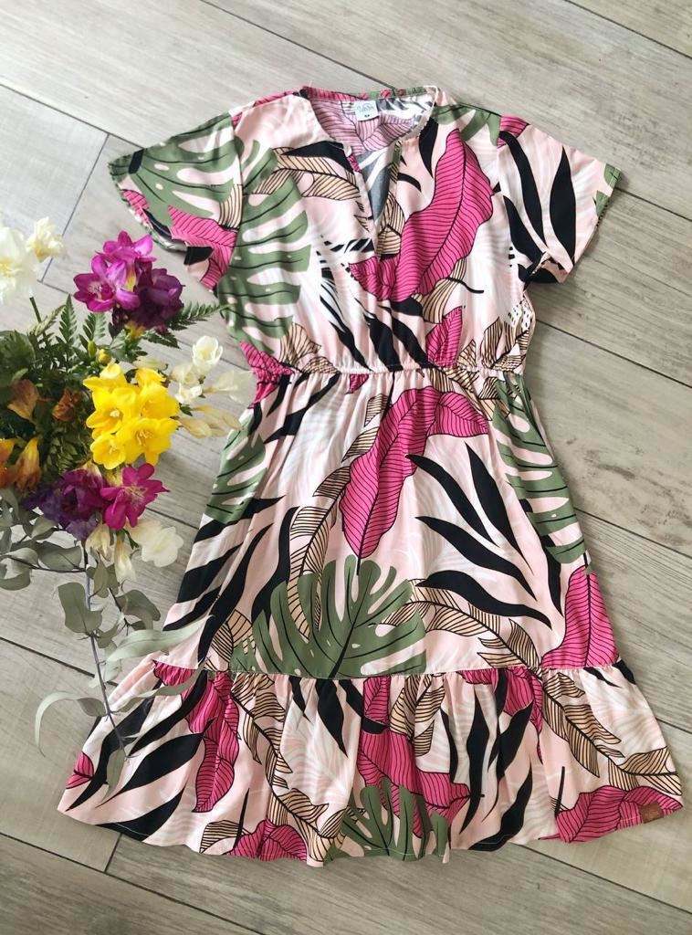 Vestido con elástico debajo de busto, escote V y mini vuelo en manga. Voile rayon estampado.